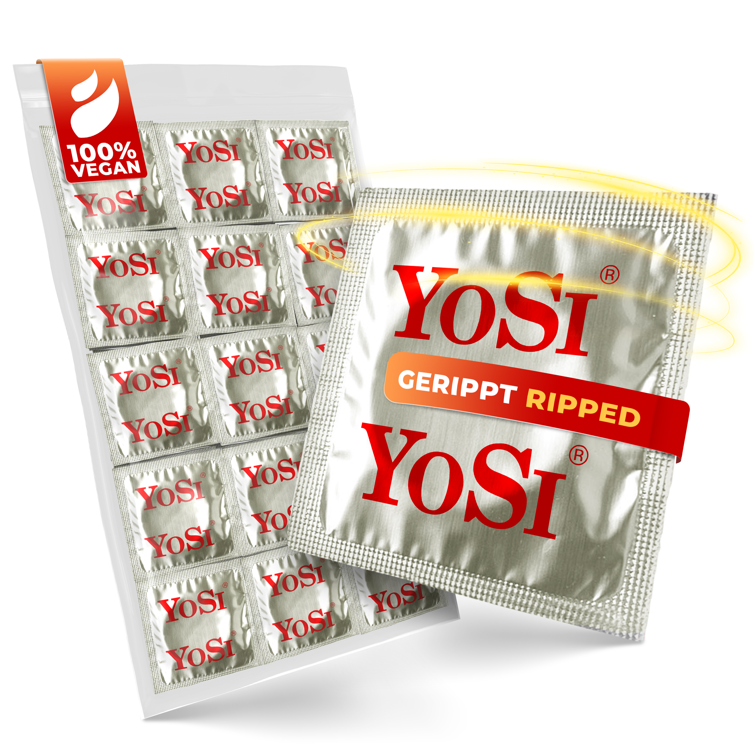 Noch mehr intensive und gefühlvolle Momente mit YOSI Markenkondomen - ein großes Sortiment aus verschiedenen Kondomen für ihr abwechslungsreiches Liebesleben. Mit Kondomen der Marke YOSI geschützt, können Sie ihre sinnlichen Momente noch mehr genießen. Ob natürlich, extra feucht, dünn, gerippt, trocken oder mit Geschmack, YOSI Kondome setzen ihrem Vergnügen keine Grenzen.